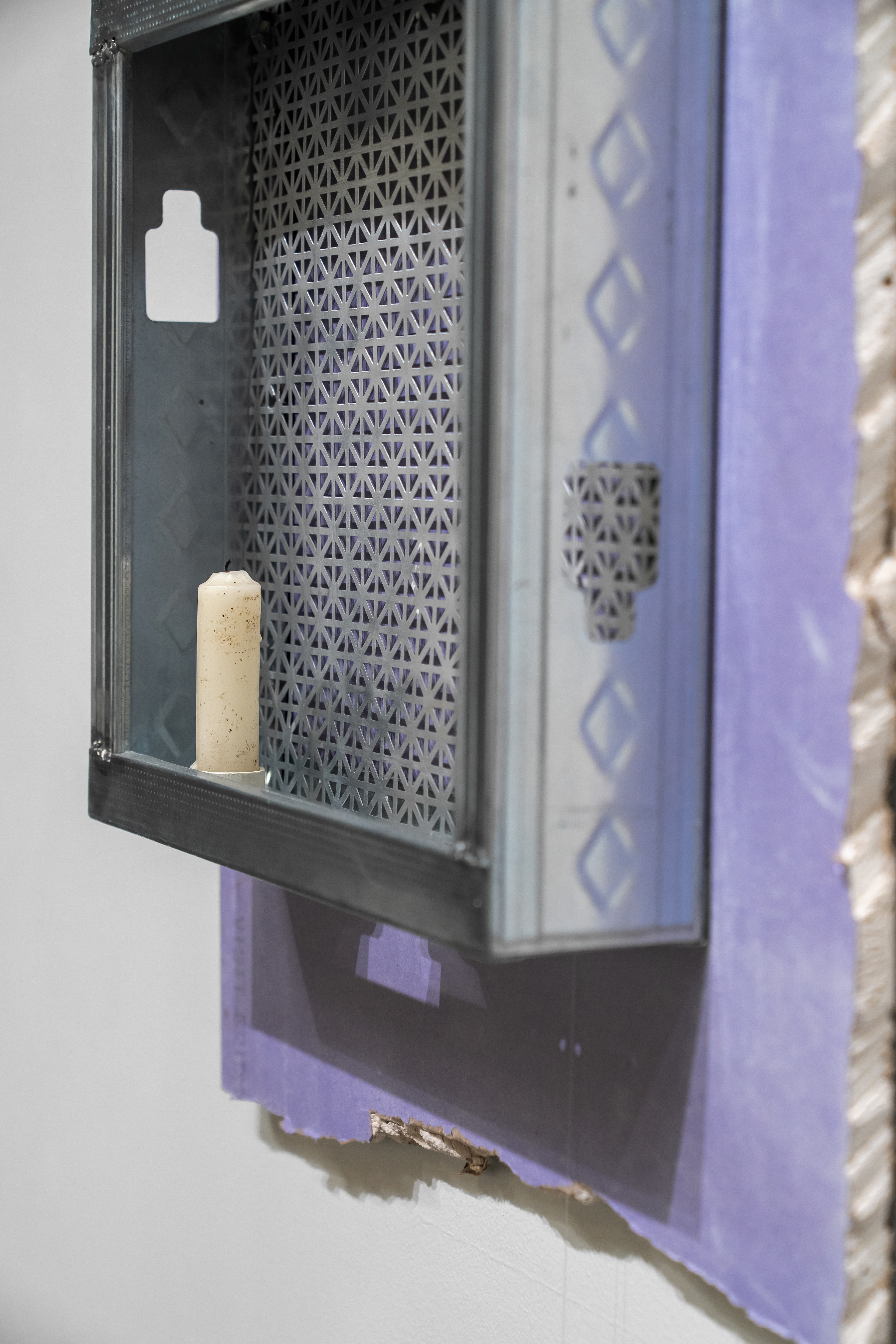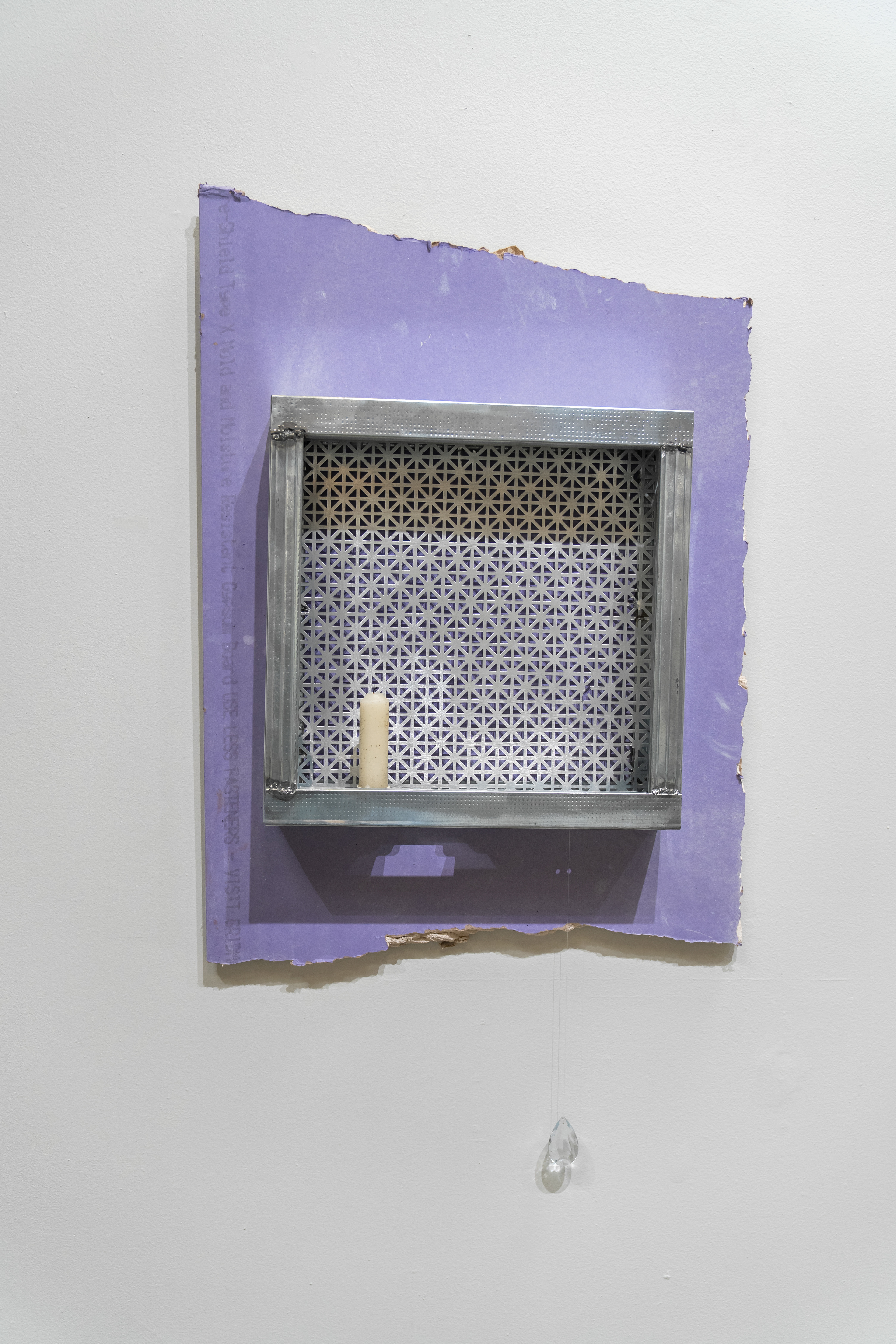 Drywall, metal, candle, crystal 39" x 22" x 5" 2025