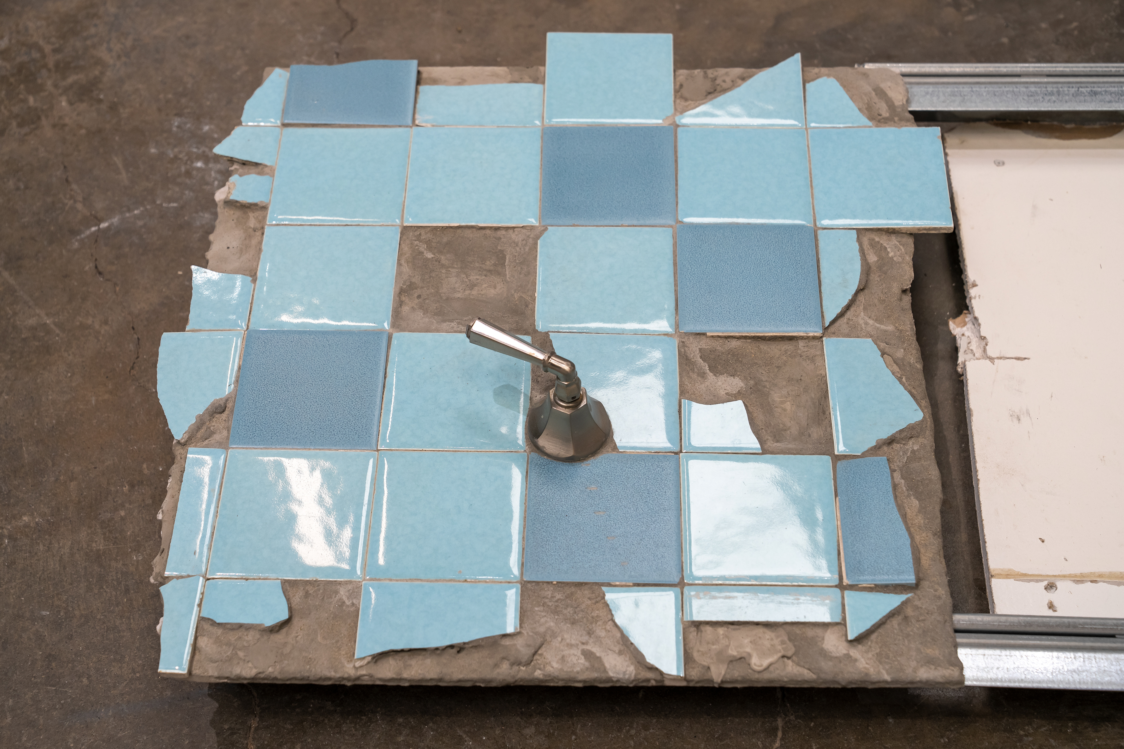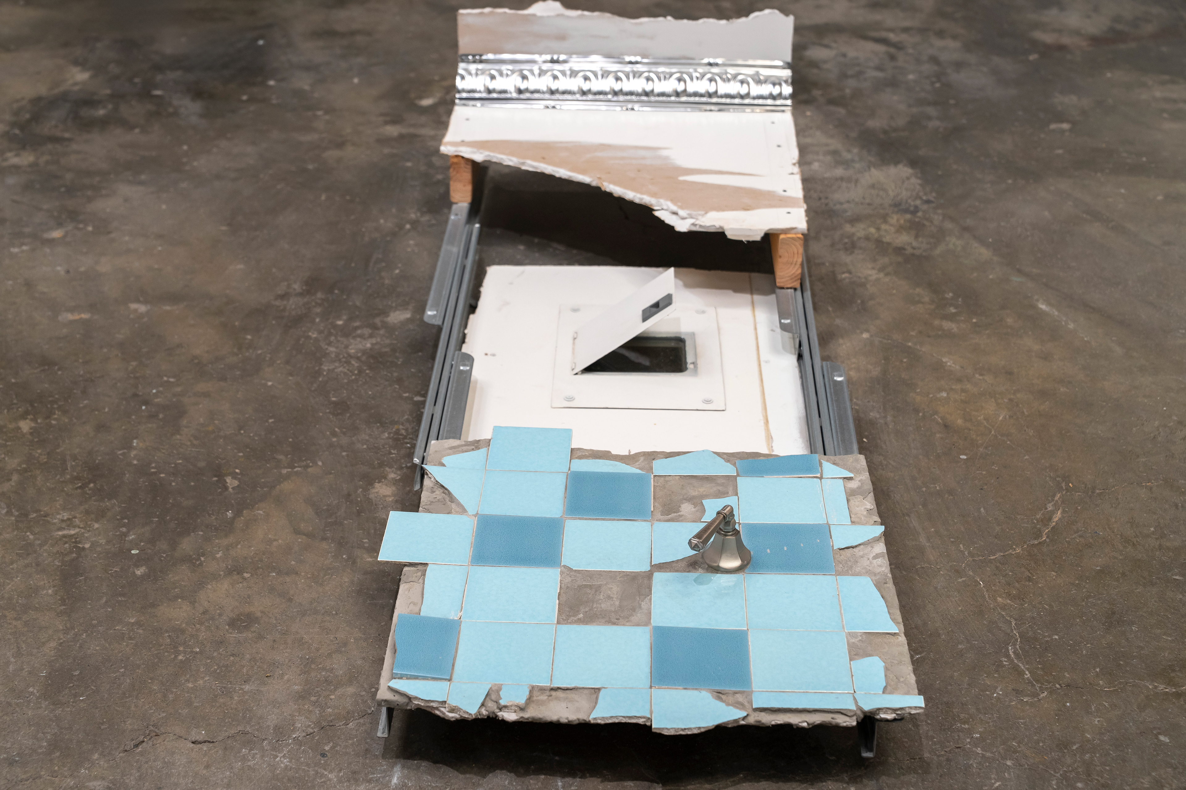 Tin crown molding, drywall, studs, electric box, tile, faucet handle 75" x 25.25" x 14.5" 2025