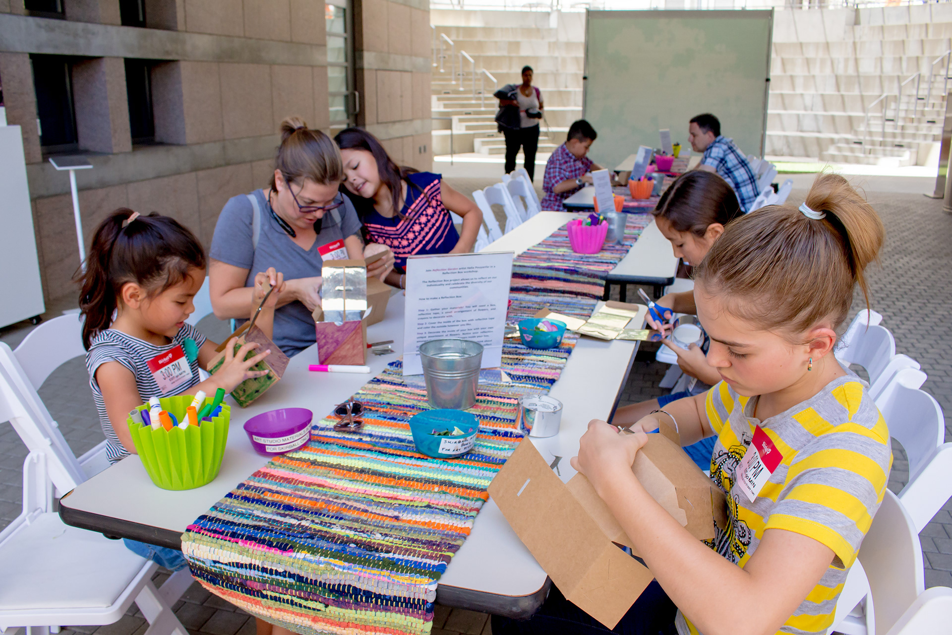 Reflection Garden highlights the Skirball Cultural Center’s mission of welcoming the stranger and encourages viewers to reflect on the idea of togetherness, diversity, and equality among all. By placing the audience as part of the mirrored art piece and bringing together visitors of all backgrounds, Reflection Garden draws on the idea of unity within diversity and hopes to manifest the divinity in each one of us.
